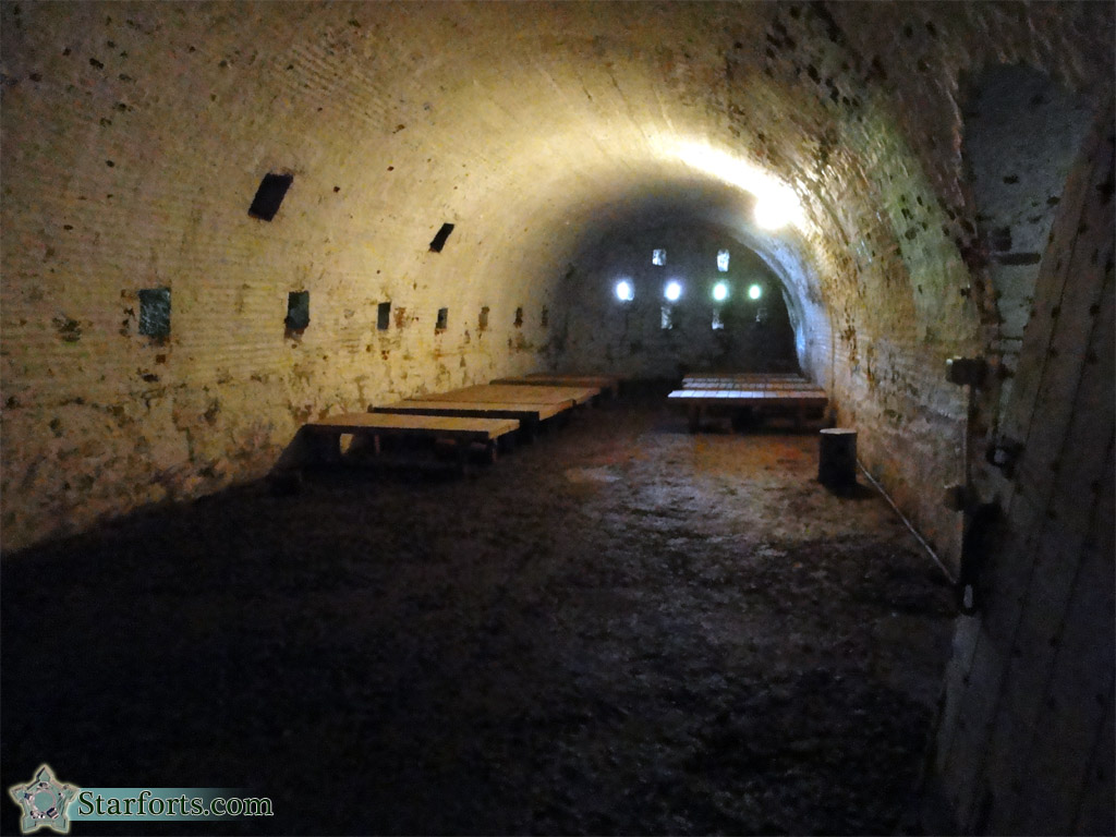 casemates. Plenty of room for lounging around on bunks, one with a fireplace on one end, but both with their far walls pierced with 8-10 loopholes for peppering notional attackers with musket fire.