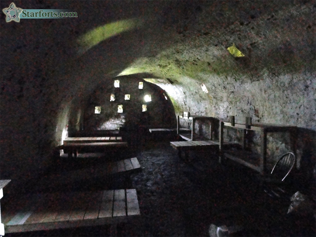 In wartime, it was thought that each of these larger casemates could house up to 100 very irritable men. Some kind of firing steps would no doubt have been constructed along the far wall, to give marksmen easy access to the loopholes.