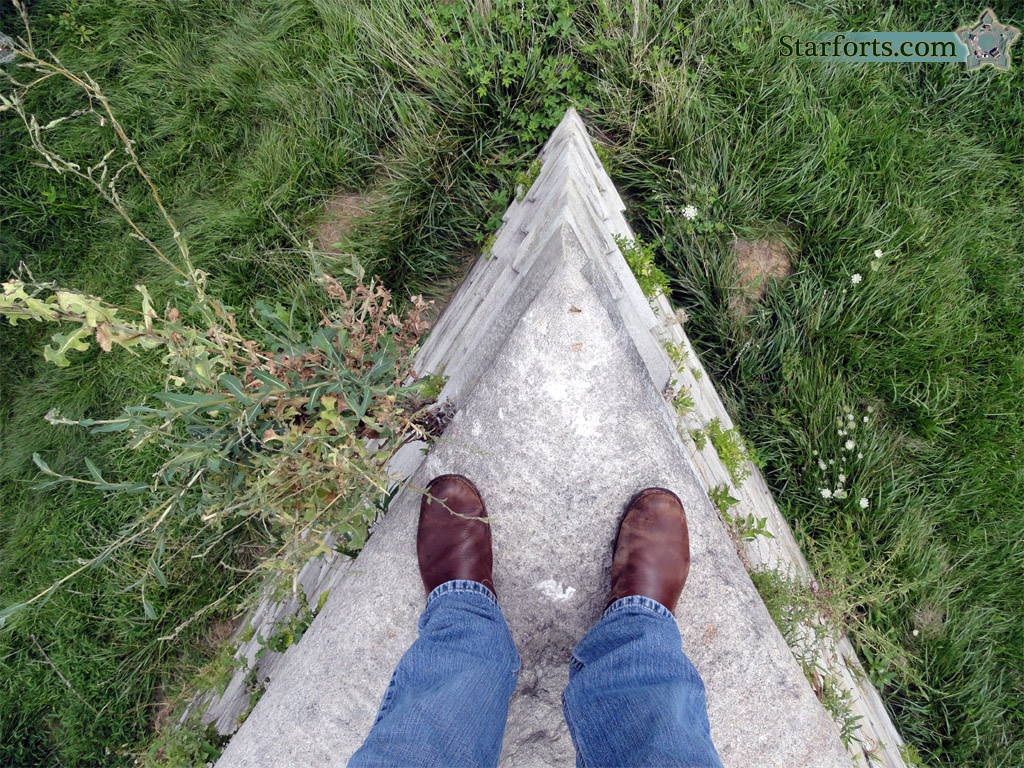 Fort MIfflin has so many pointy corners ( a total of eight) that it's difficult to identify them by traditional means. The Spanish liked to name the bastions on their starforts things like Holy Mother of Forgiveness or Sacred Puppy of Antagonism. This must have been a mouthful in the heat of battle, but at least it would avoid the necessity of me describing this as Fort Mifflin's south-southeast bastion. It's definitely the pointiest of them all, jutting menacingly towards the dastardly New Jerseyites on the other side of the Delaware.