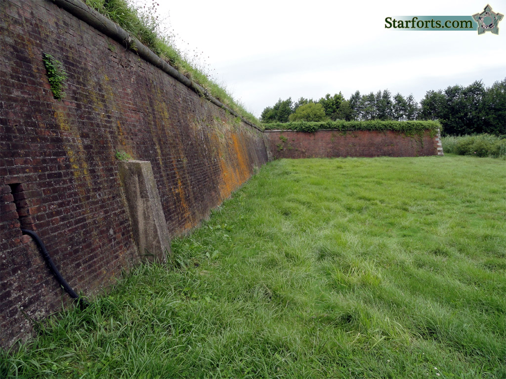 Okay! We've walked around the top of the fort, it is now time to circumnavigate. This is looking right while standing in front of the northern sallyport. That is, incidentally, not a deadly black snake making its way into the fort at bottom left, but a less-than-deadly hose.