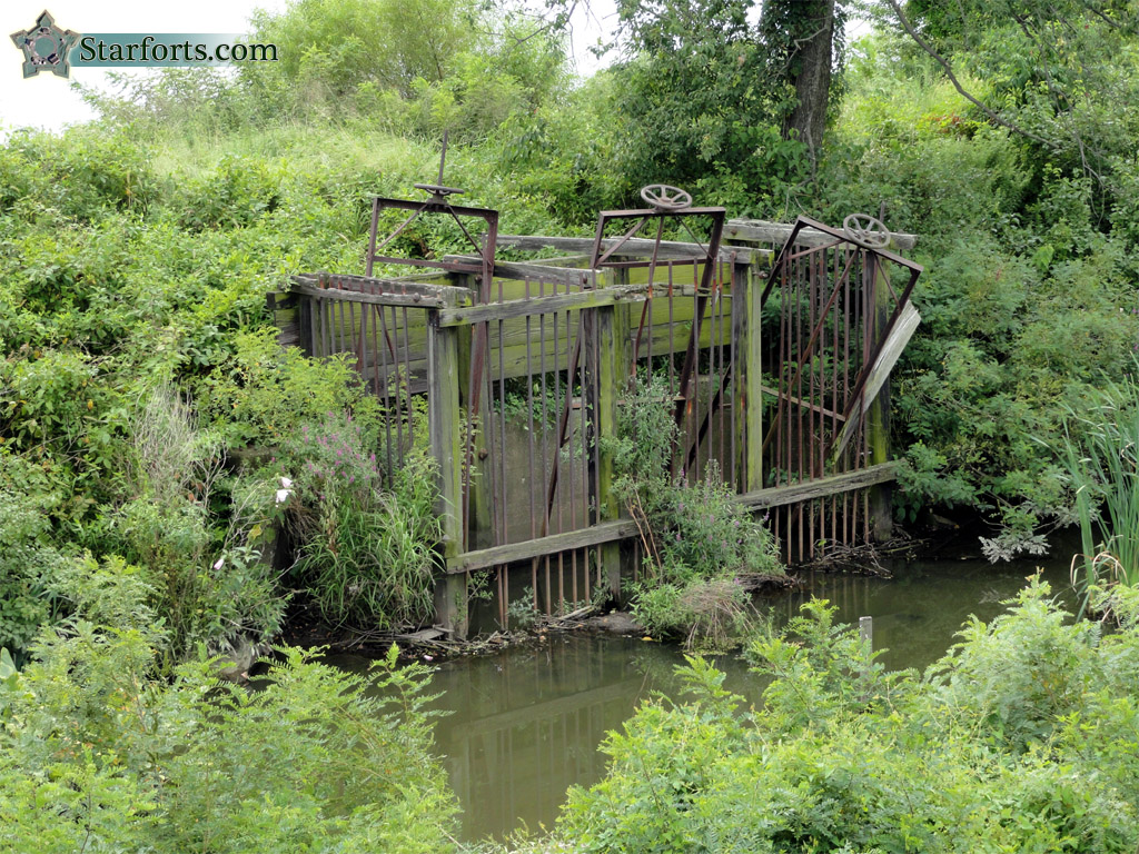 this collection of rusty iron wheels 'n' bars made it easier! This is along a trail that leads into the woods to Fort Mifflin's southwest.