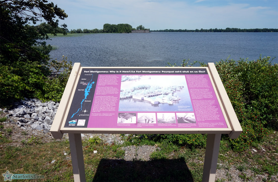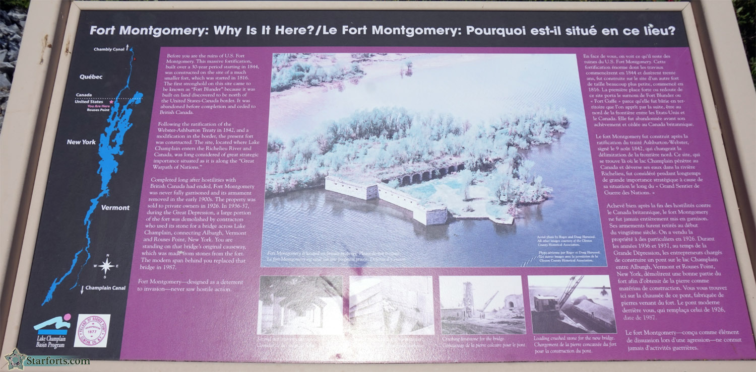 The pulloff on the New York side of the bridge is on what's left of the original Rouses Point Bridge. Here we see a lovely historical marker about Fort Montgomery, entitled, Why Is It Here? Please click here if you have an interest in reading this sign. |