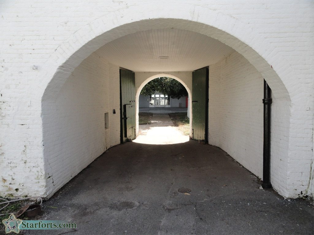 Yeah, I know we've seen the main gate a whole lot already, but here it is again, looking out from inside the fort. Note the square opening along the left wall, which is the fecal-matter-throwing port for the wicked dark dungeon of doom.