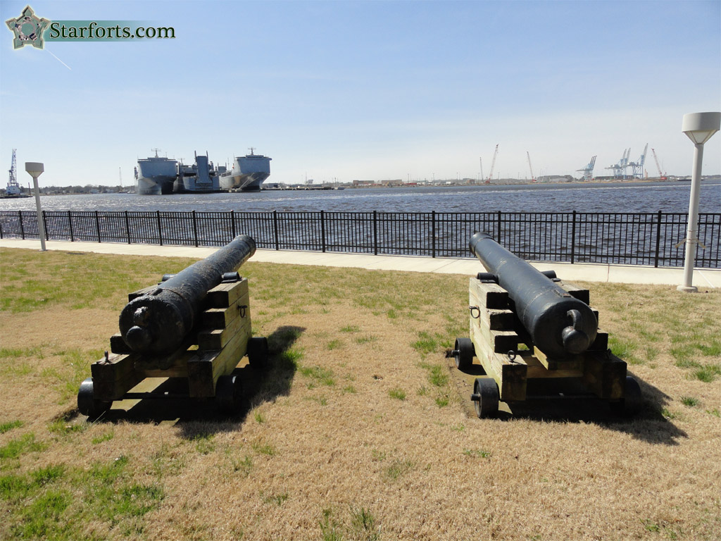 Those inappropriately-placed naval guns, watching over a couple of ENORMOUS US Army Corps of Engineers dredges.