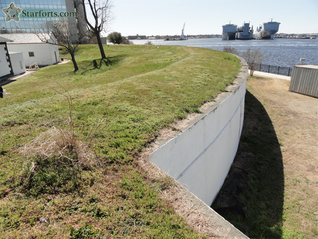 The curve of Fort Norfolk's business side, out from which all of its guns would be pointed in a threatening manner.