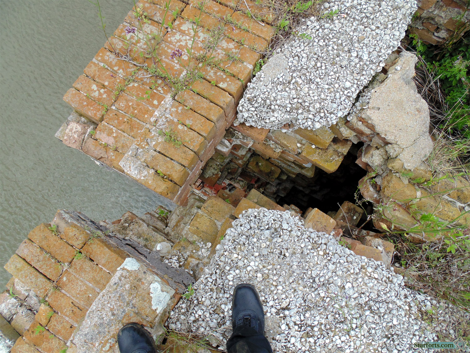One doesn't need an explanation from Simon Bernard to understand that this is a sickly (demi)bastion. As far as I can tell, the shell-infused concrete that's spread behind the leading edge of the wall is from a later attempt to shore up what was probably already crumbling at the end of the 19th century.