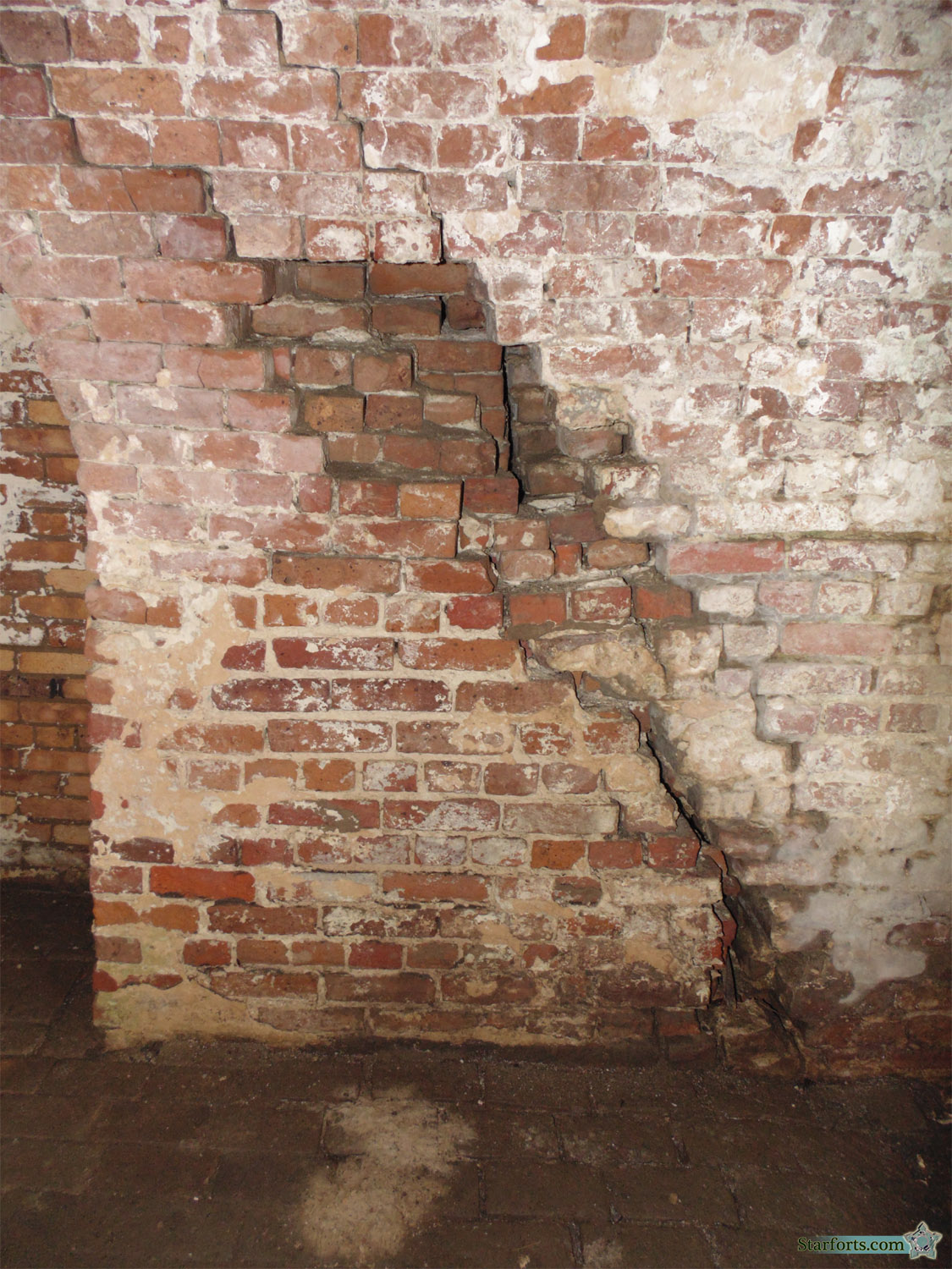 More nasty cracks in the wall. As I went through the pictures I had taken at Fort Pike to determine which would be included in this gallery, I found that I had a whole lot of pictures of cracks. I of course endeavor to enpict everything that might be of even the slightest future interest on my starfort visits, but I certainly don't foist every single one of them on you. There are plenty more pictures of cracks to come in this gallery, but in case you have a weird need to see even more, please let me know and we'll find you some counseling.