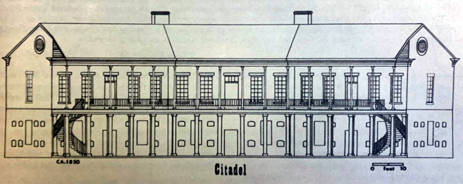 Upon its completion, this citadel was by far the grandest structure in the area. The citadel certainly dominated Fort Pike's parade ground, and initially a huge square cistern took up much of the rest of this space.