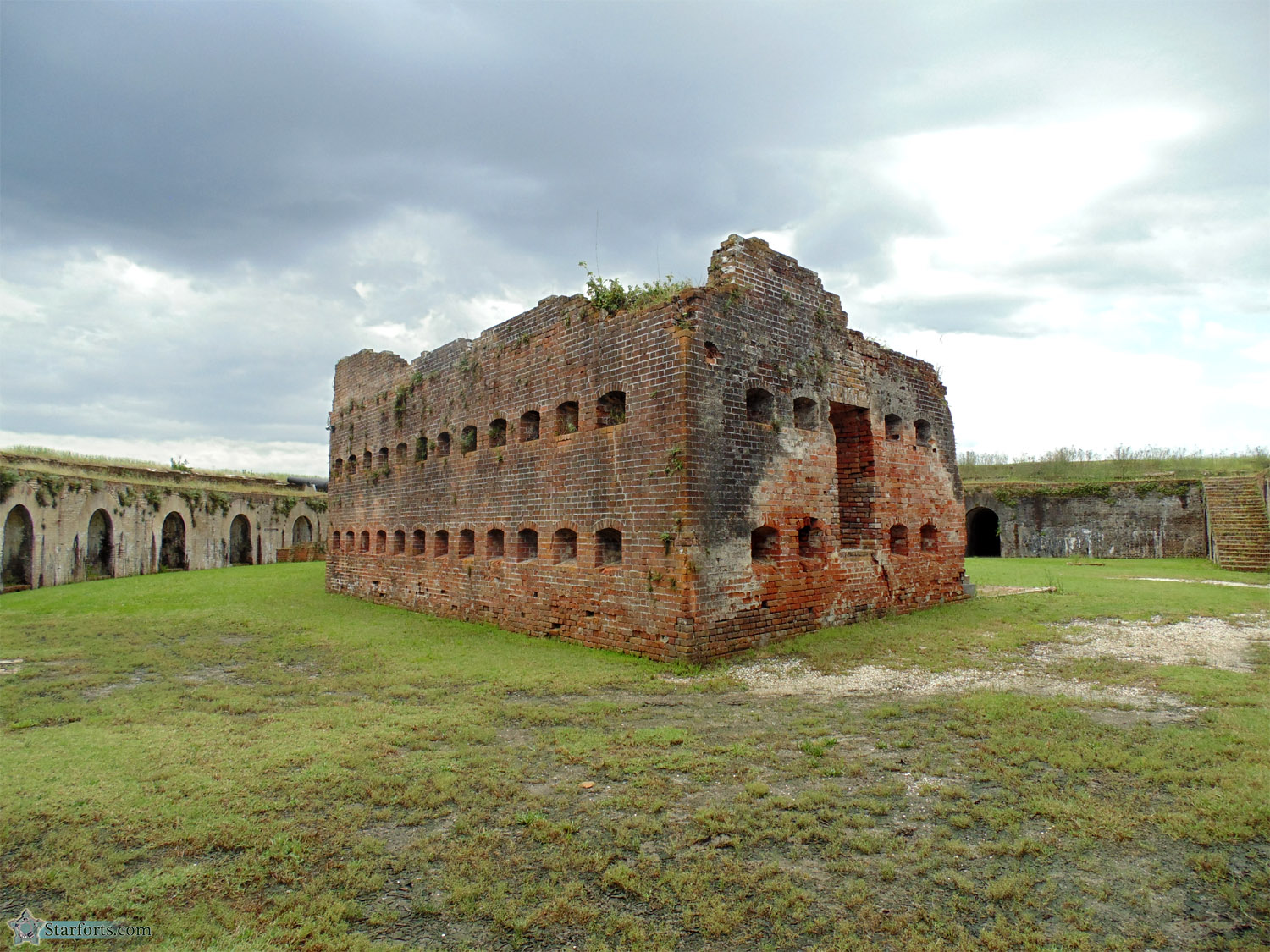 The citadel. When originally built it was a one-story affair, but in the 1850's Fort Pike got a facelift, and a second story was added to the citadel...which Confederates tried to burn upon their hasty departure in 1862, and a less intentional but more effective fire in January of 1887 finished the job, which conflagration was reportedly visible from New Orleans, 25 miles away.