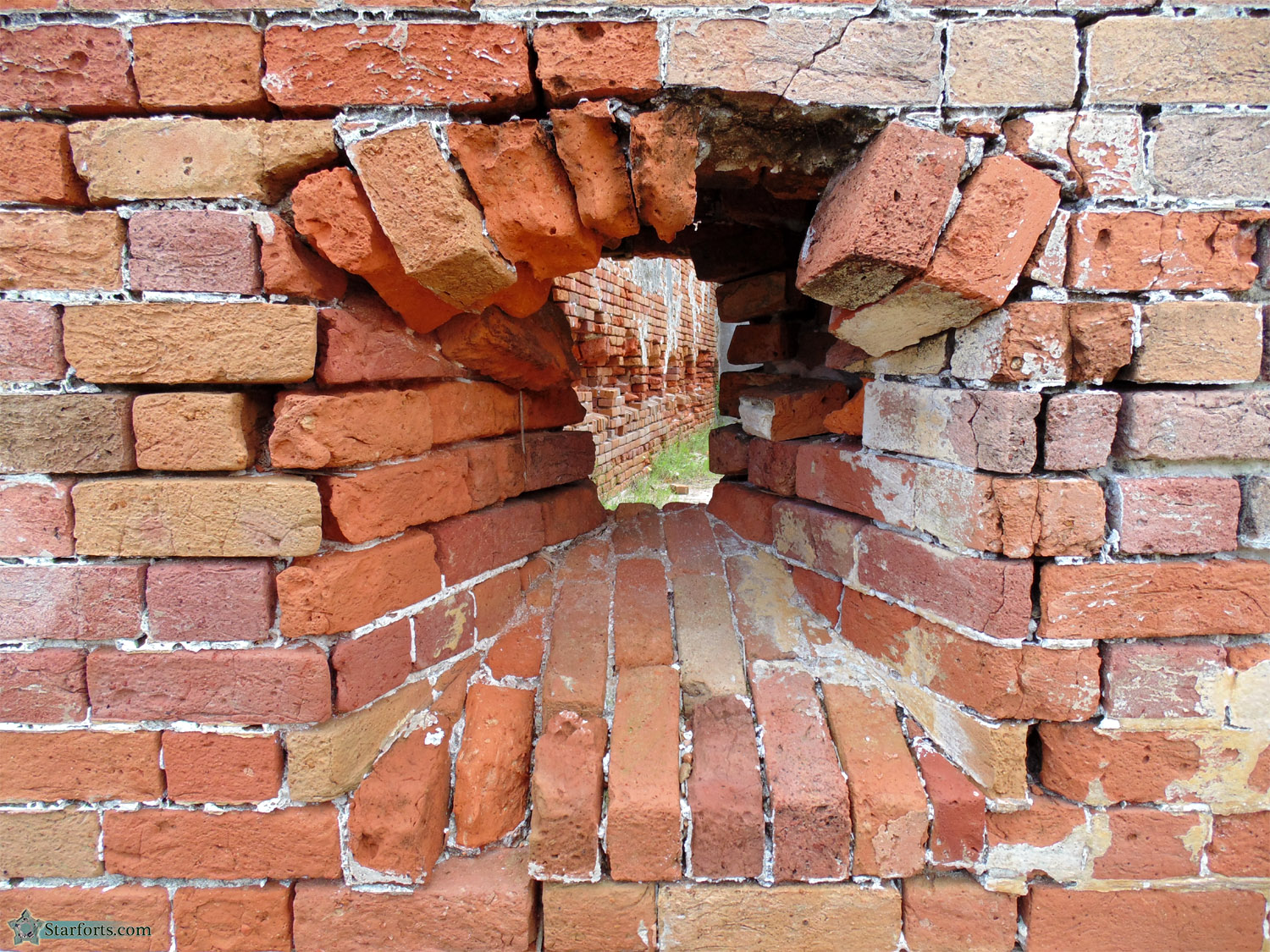 The citdadel's daily occupation was to serve as living quarters for Fort Pike's garrison (maybe more comfortable than living in a casemate, but it couldn't have been too much better, surely), but its ultimate duty was to be the fort's last-ditch defense should the outer earthworks, moat, drawbridge and walls all fail to keep attackers out. As such, these picturesque little rifle loops stud the sides of the citadel.