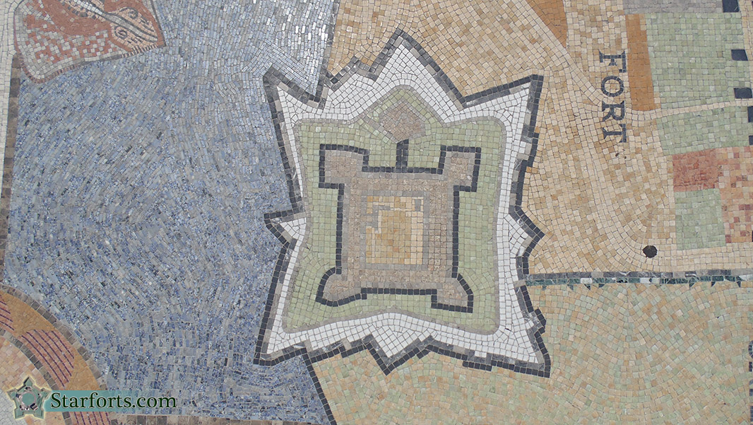 This shot comes from an impressive walkway outside St. Augustine's Information Center, which is right across the street from the Castillo. Is this an accurate representation of the Castillo? Of course it isn't, but you try to produce photo-realism with little square tiles as your artistic medium!