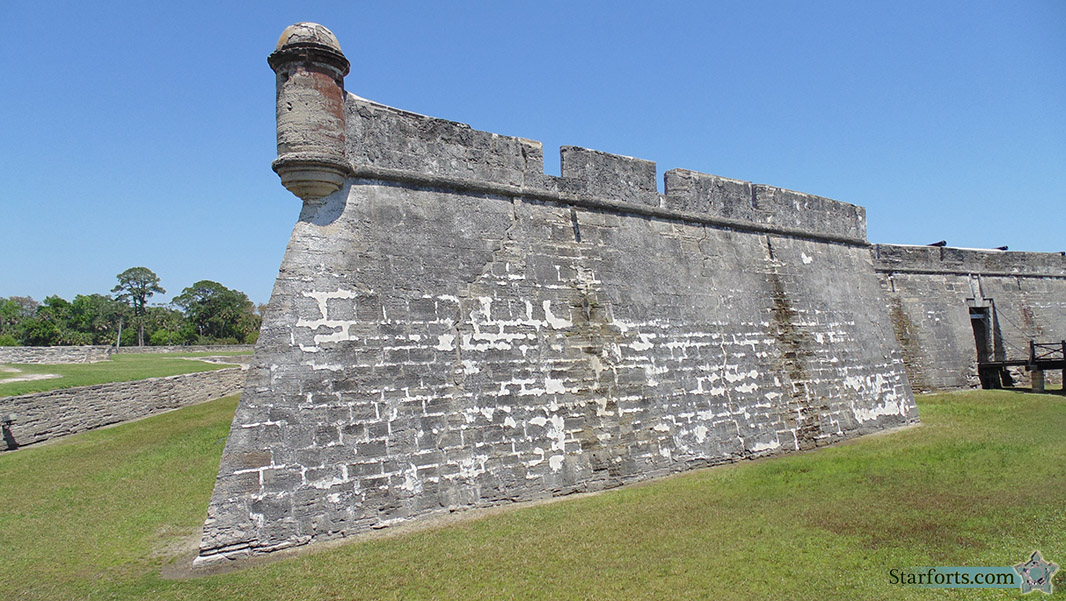 The Castillo's southwest bastion displays a distinctive ship's prow-like tilt to its leading edge. Was this intentional? The mighty Spanish vessel slicing through the sea of its enemies and/or colonial underlings? The Castillo's moat was partially backfilled in the 1990's, so the initial appearance of a bastion's edge from this angle may have looked substantially different in ye olden dayes!