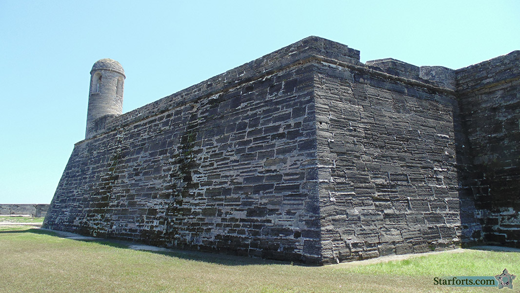 Most European powers liked to name their starforts' bastions, which gave them an excuse to honor more bigshots, or in Spain and Portugal's case saints, by naming important things after them. The Castillo's four bastions were named San Pedro, San Augustín, San Carlos and San Pablo. Were Catholic saints pleased that pointy starfort bastions were being named for them? They'd be fools not to be pleased.