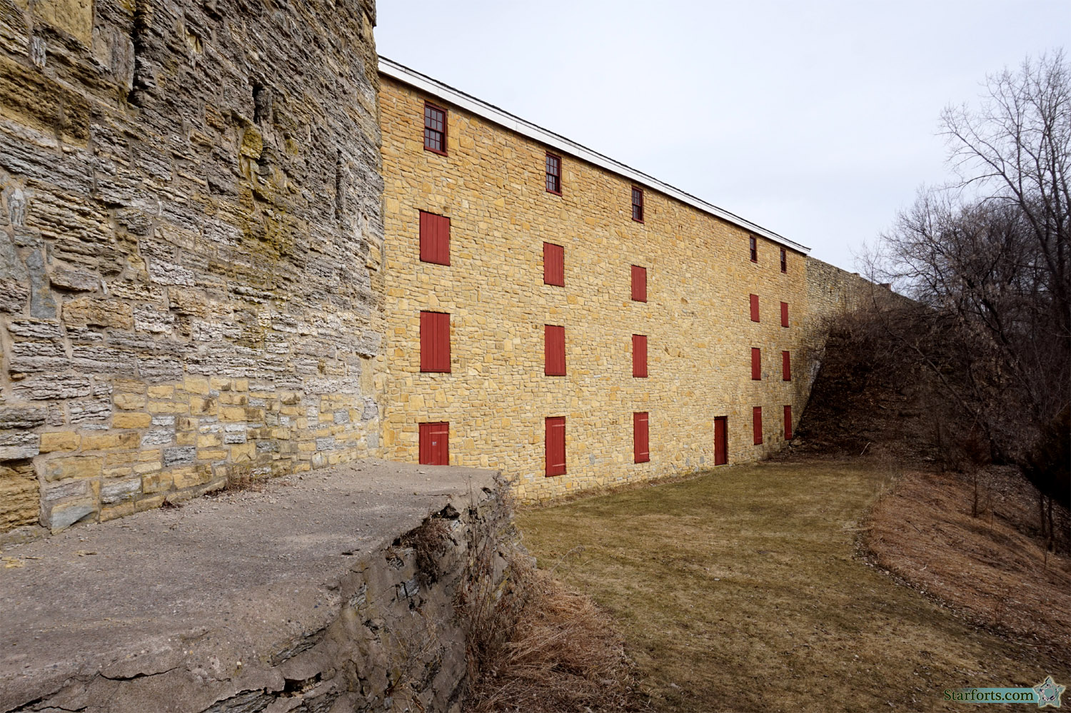 Fort Snelling's southeast wall, which concludes with the Half-Moon Battery, jutting pugnaciously over the confluence of the presently somewhat gently engorged Mississippi and Minnesota Rivers.