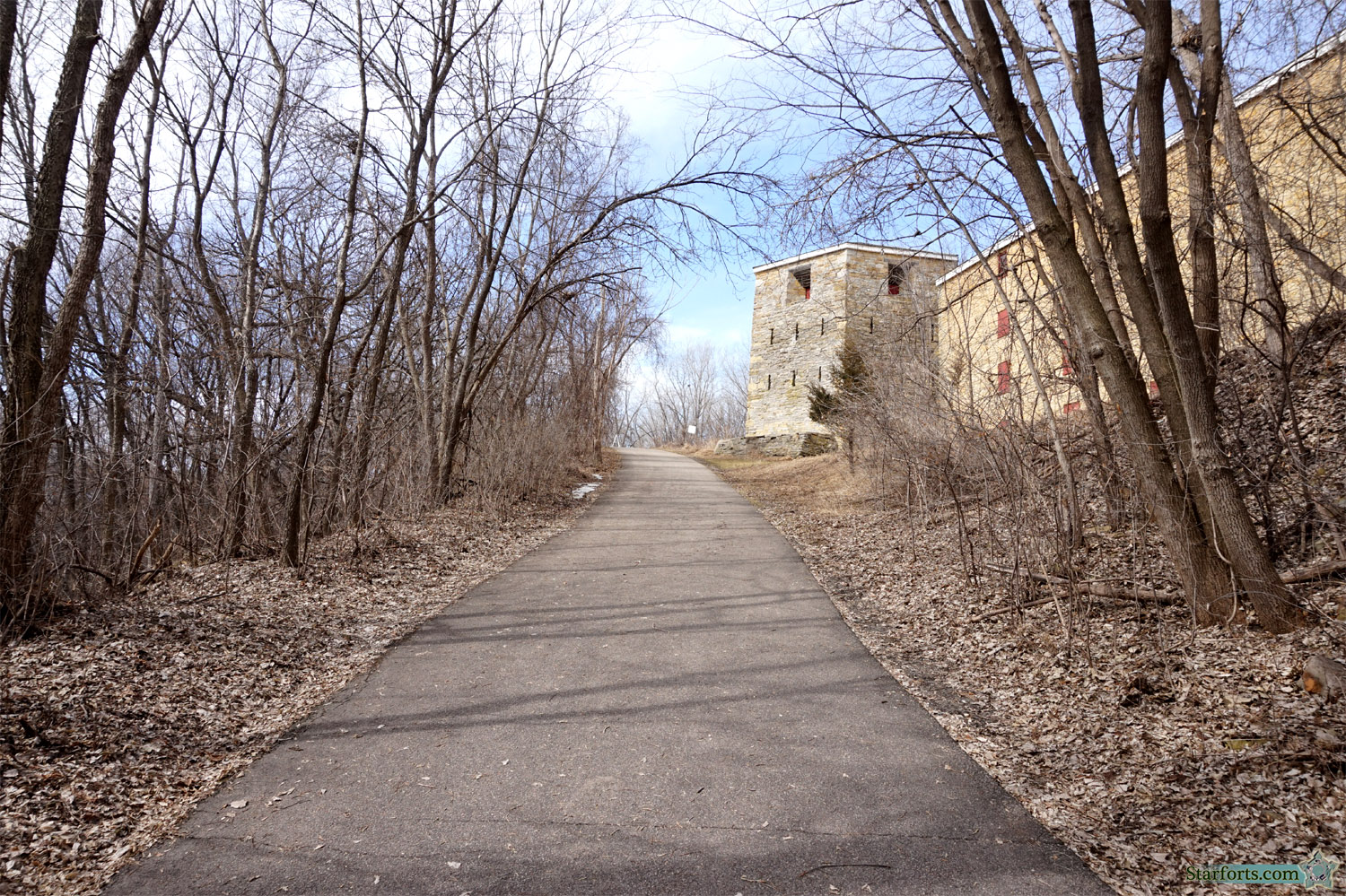 I haven't fallen! That toe-dangling spot on the previous page was as far as I could get with the circumnavigation, so down the hill I scampered to check out the trails that Fort Snelling State Park had to offer.