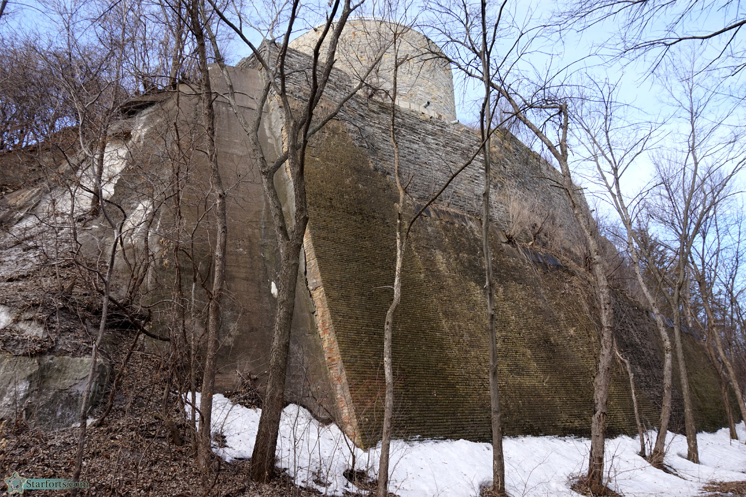 The Minnehaha Trail, which runs along the northern side of Fort Snelling, was blessedly above water. Remember that pic of my toes dangling over the non-starfort point at the Half Moon Battery? This is a more impressive representation of the height involved.