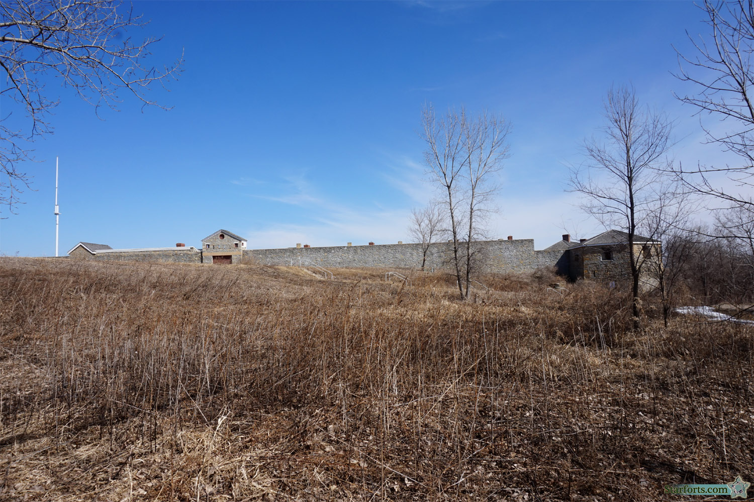 Having seen all there was to see along the Minnehaha Trail (I got as far as the Fort Road Bridge, but visit Bridges.com if you want bridgepix (actually don't, I just checked and I'm not sure what Bridges.com is, but I'm pretty sure it isn't a bridge appreciation site)), I turned around and headed back down and joined up with the Snelling Lake Trail, which brings us back to Fort Snelling's southwest wall, where we return to the main gate.