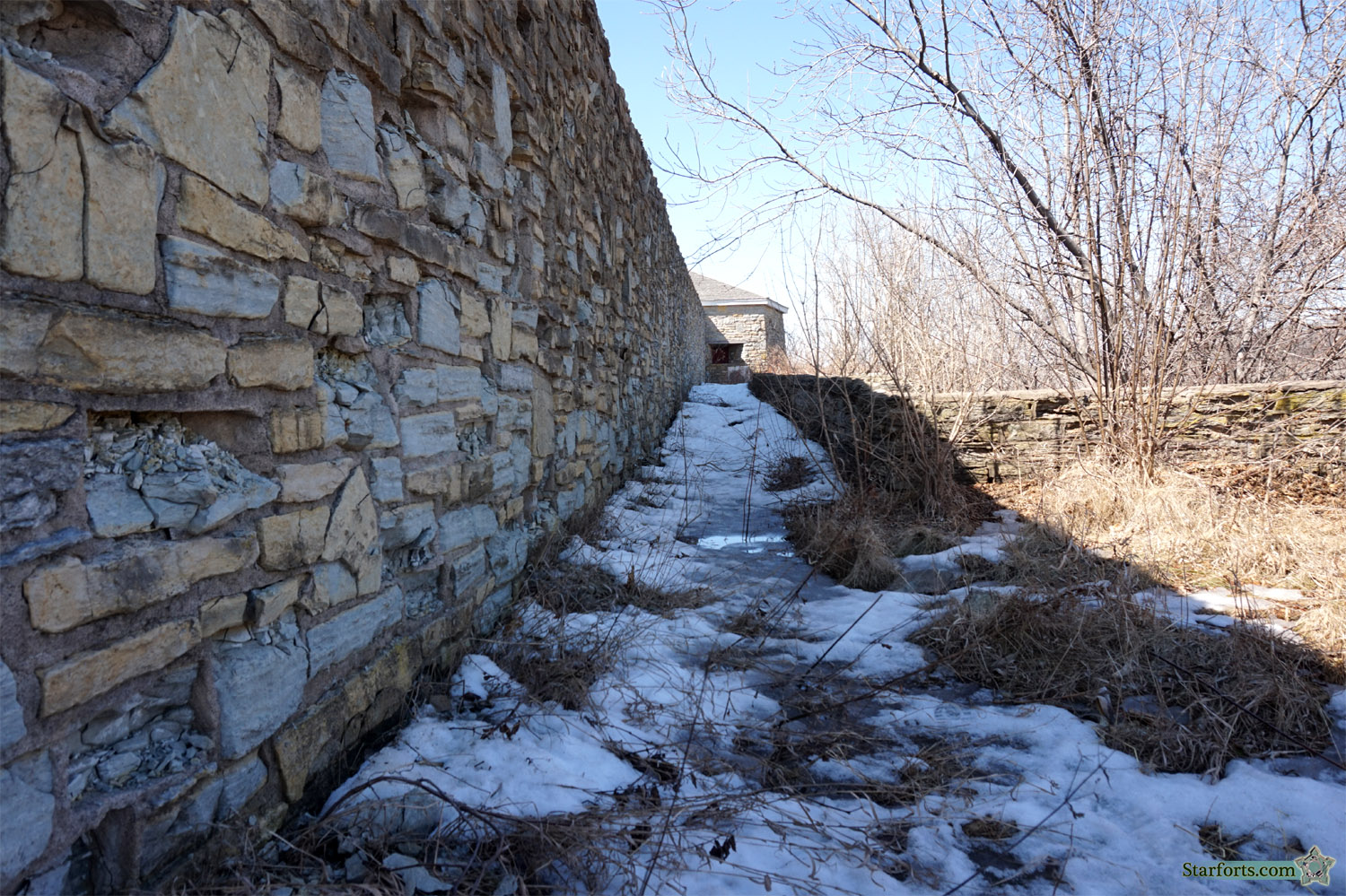 Heading back along that northeast wall. The North Battery is ahead. Snow is a good thing, even when all that's left is a crusty, icy remnant of what it once was.