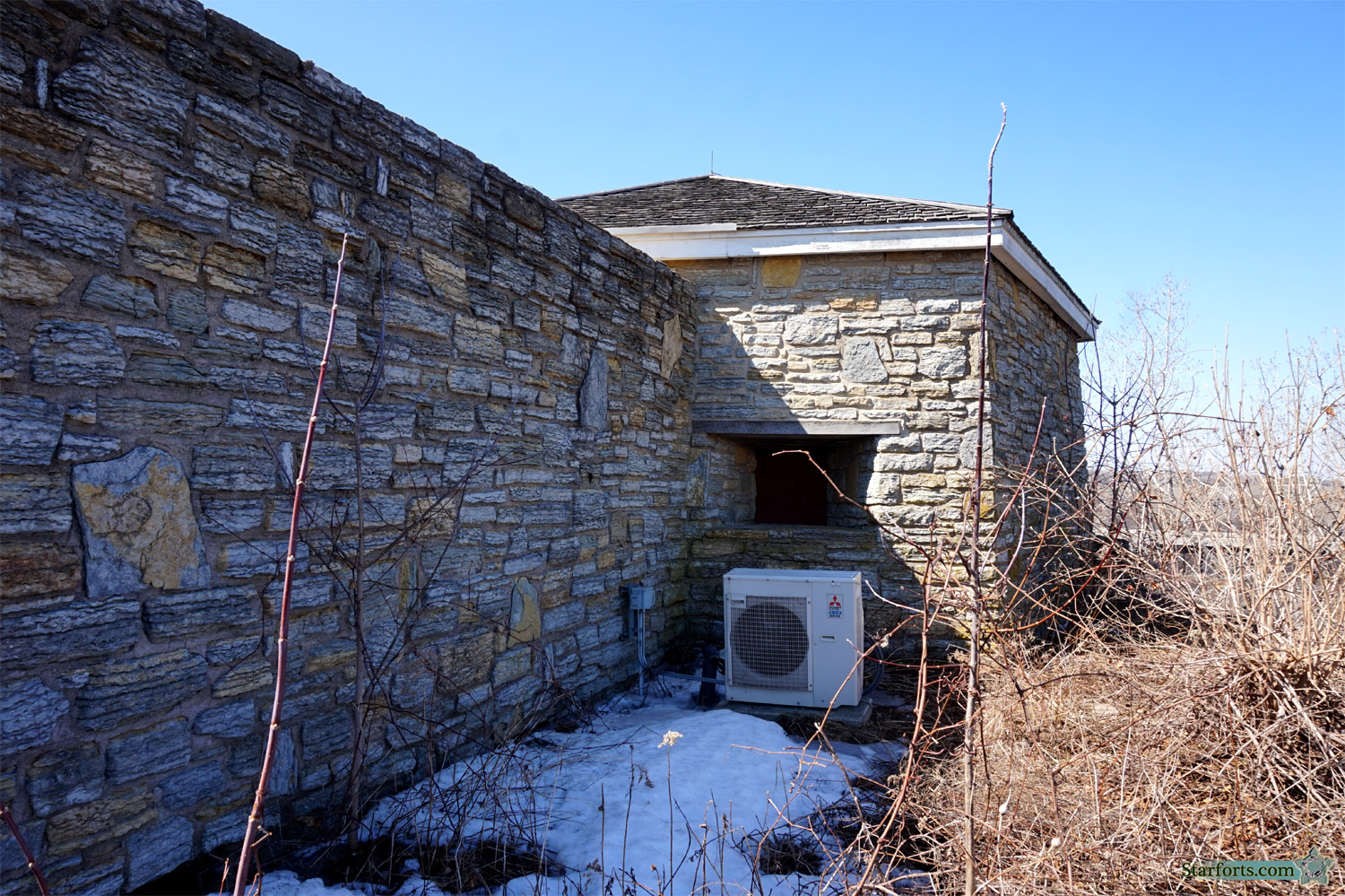 The North Battery! And some nice air conditioning. One wonders again how much of Fort Snelling is original, and how much is a reproduction: That out-of-step large block in the wall to the left, in particular, seems incongruously delightful.