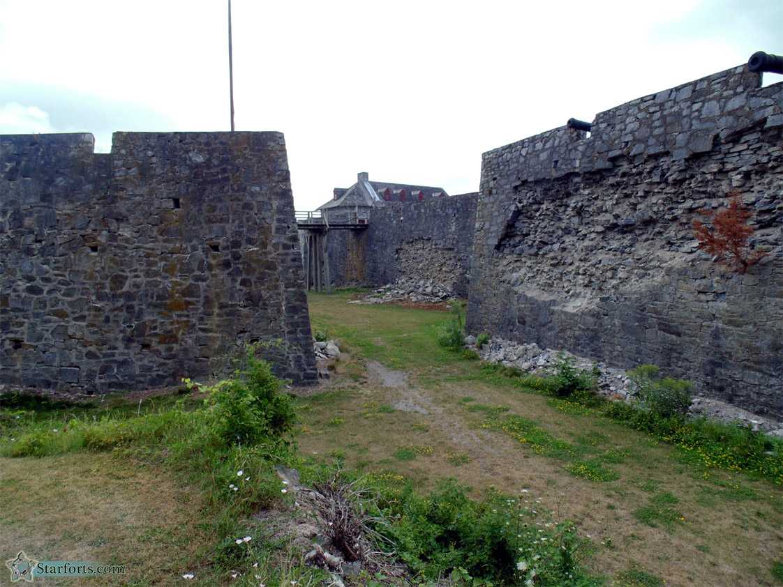 Strolling along the fort's northern side, with the northern ravelin to the left, northwest bastion to the right. As you can see, just about every surface is fighting its own battle with gravity.