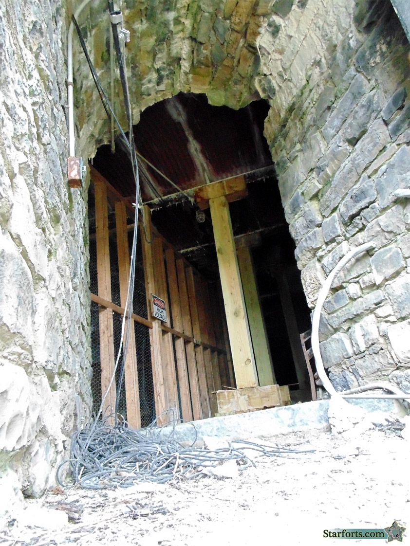 Another tempting entry into the northwest bastion, which was locked with an iron gate...but my hand and camera got about three feet inside, to reveal...something that was high voltage. Yeah, thank you for keeping THAT entry locked up, Fort Ticonderoga!