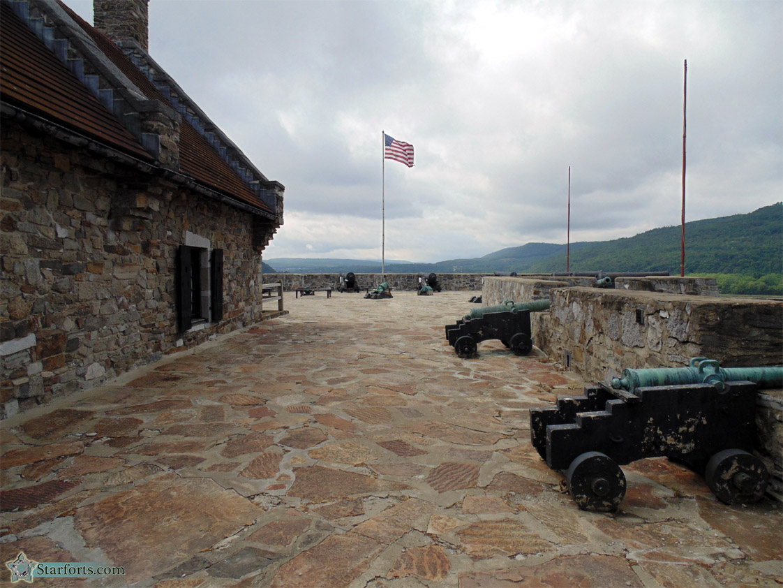 The gun deck, along Fort Ticonderoga's western curtain wall, looking towards the southwest bastion.
