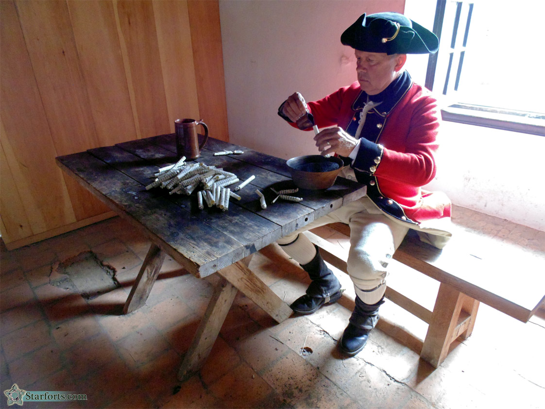 This period gentleman invited me to witness the exciting process of making paper cartridges, to be discharged using the justly famous (for being an incredibly heavy burden to carry) Brown Bess musket!