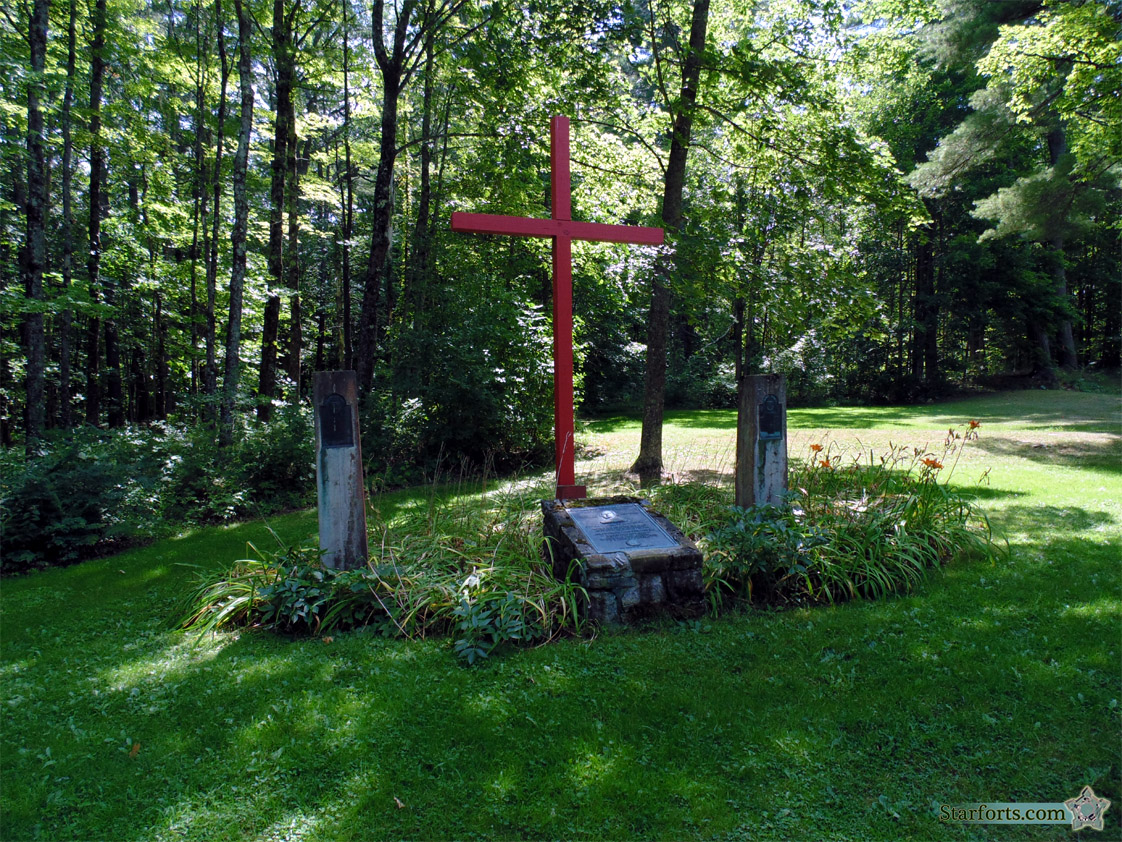 And here, Montcalm was so pleased with his accomplishment (if you don't know to which accomplishment I am referring, please study the previous couple of pictures a little more carefully) that he erected a large wooden cross of thanksgiving. Which was probably not the same wooden cross we're looking at here. Click here to see the plaque which, you will be surprised to learn, has a picture of a rather smirky Montcalm on it. |