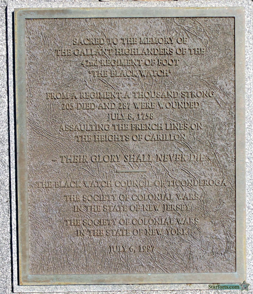 A majestic little tower dedicated to the Black Watch, the gallant Highlanders of the 42nd Regiment of Foot, many of whom perished trying to get past the French in July of 1758. You guessed it,