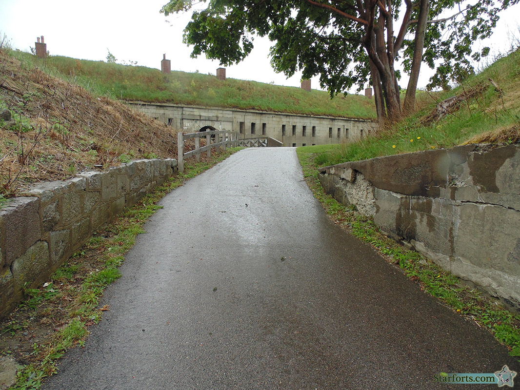 The path leading to Fort Warren's main gate, which is described there as a mere sallyport, but which is