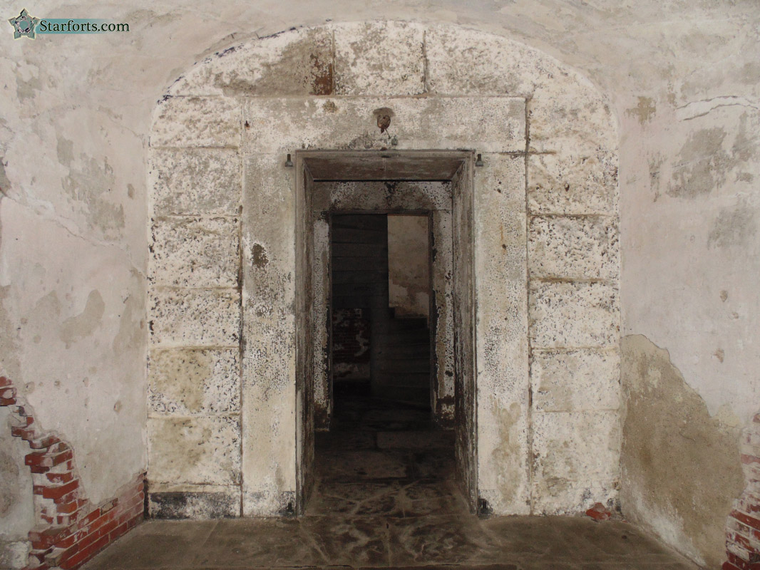 One can see why the demilune would have been used to hold prisoners. Built as a series of casemated rooms from which defenders could fire upon attackers through loopholes, those walls were