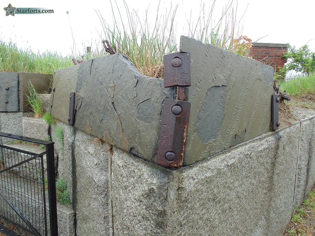 Bolted along the top of Fort Warren's terreplein walls are sections of what appears to be slate, which supports the earth that helps to protect gun crews from an attacker's fire. This was a standard American starfort entity, which I also witnessed at Fort Mifflin in Philadelphia: Click here to see what it looks like there!