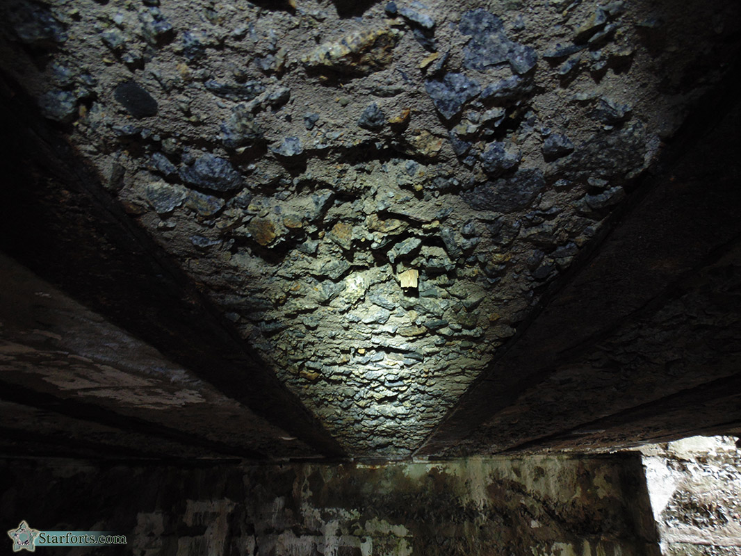 Within the Endicott structures there are of course magazines for the huge shells intended to be flung at the expected Spanish and/or British and/or Russian and/or German seaborne force. These magazines aren't the brick casemates with gorgeous vaulted celings of the 1850's, but the ugly, low-ceilinged steel-and-concrete hovels of the 1890's. Check out all those cool little rocks that were mixed into the concrete!