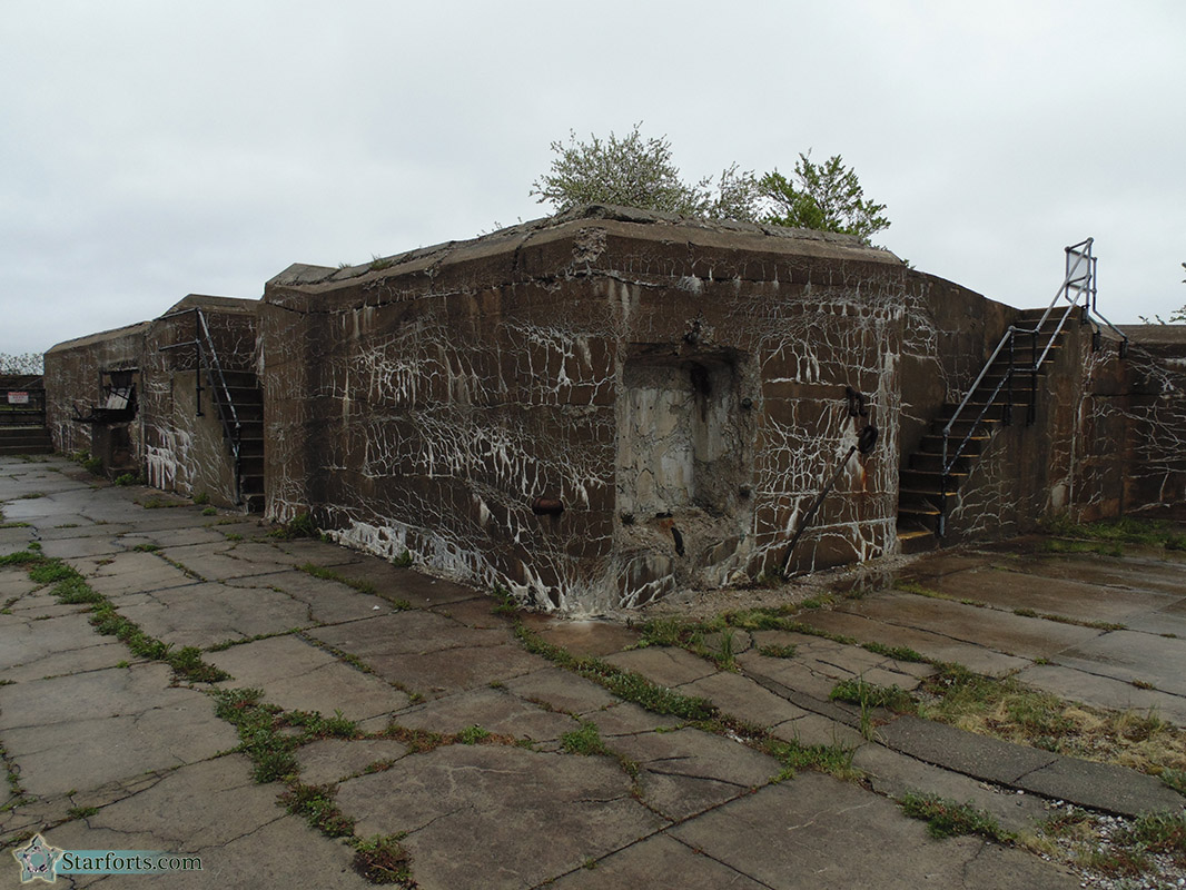 Battery Stevenson, named for Brigadier General Thomas G. Stevenson, who was killed in action in Spotsylvania, Virginia on May 10, 1864, during the US Civil War. These were Fort Warren's big fists, two M1895 12" Disappearing Guns. Which of course is not what we're looking at here, because those guns themselves are long gone, having been transferred to Watervliet Arsenal near Albany, New York in 1944.