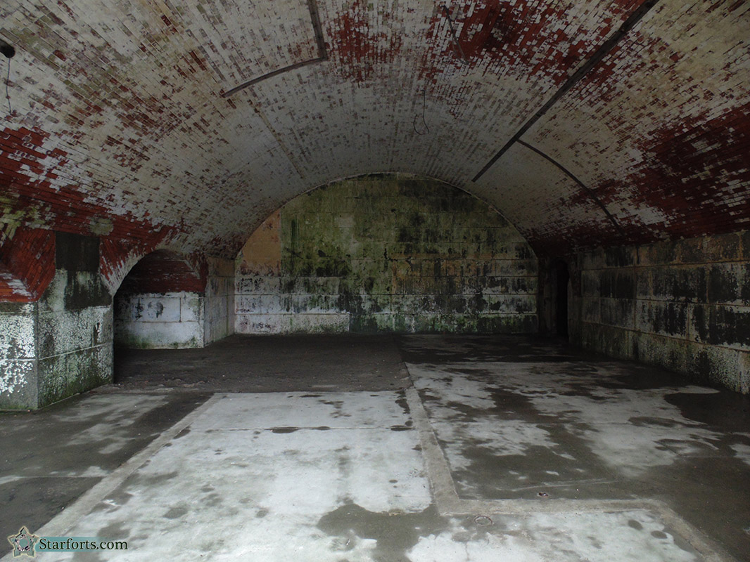 Bastion A, Fort Warren's eastern bastion, was roofed over in the 1870's...it was originally similar to the fort's northern and western bastions, which have casemates all along the edges, but an open space in the middle. This roofing-over was enacted in order to mount 15-inch Rodman Guns on the bastion's barbette tier, but it created a huge new indoor area, part of which became known as the Dark Arch. I thought I was looking at the Dark Arch here, but this is just the Dark Arches' vestibule!