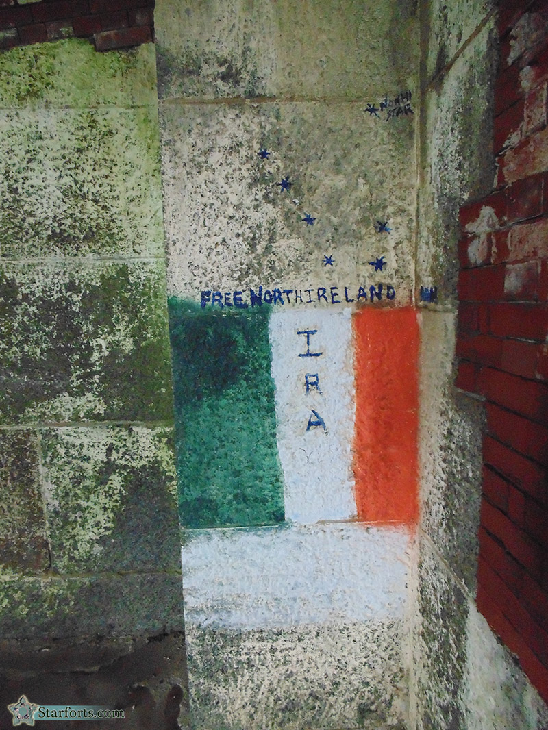 Even once I recognized the flag and message for what they were, it still seemed an odd message to see in an American starfort in 2015, but of course Boston is known for its large Irish contingent, and the Irish Republican Army didn't officially lay down its arms until 2005...and ten years is a drop in the bucket for an historic starfort.