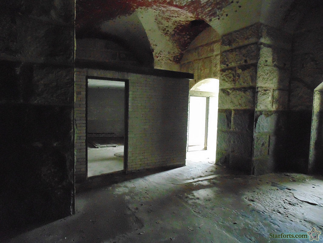 A passageway of relatively recent vintage leads up from the Dark Arch area to a few semi-modern-looking office cubicles (and by semi-modern I mean 1950's or so), and...daylight! It's a faux sallyport, which today we would call a door to the outside!