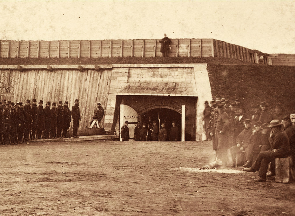 Soldiers of the 1st Michigan laze about Fort Wayne's sally port, 1861 |